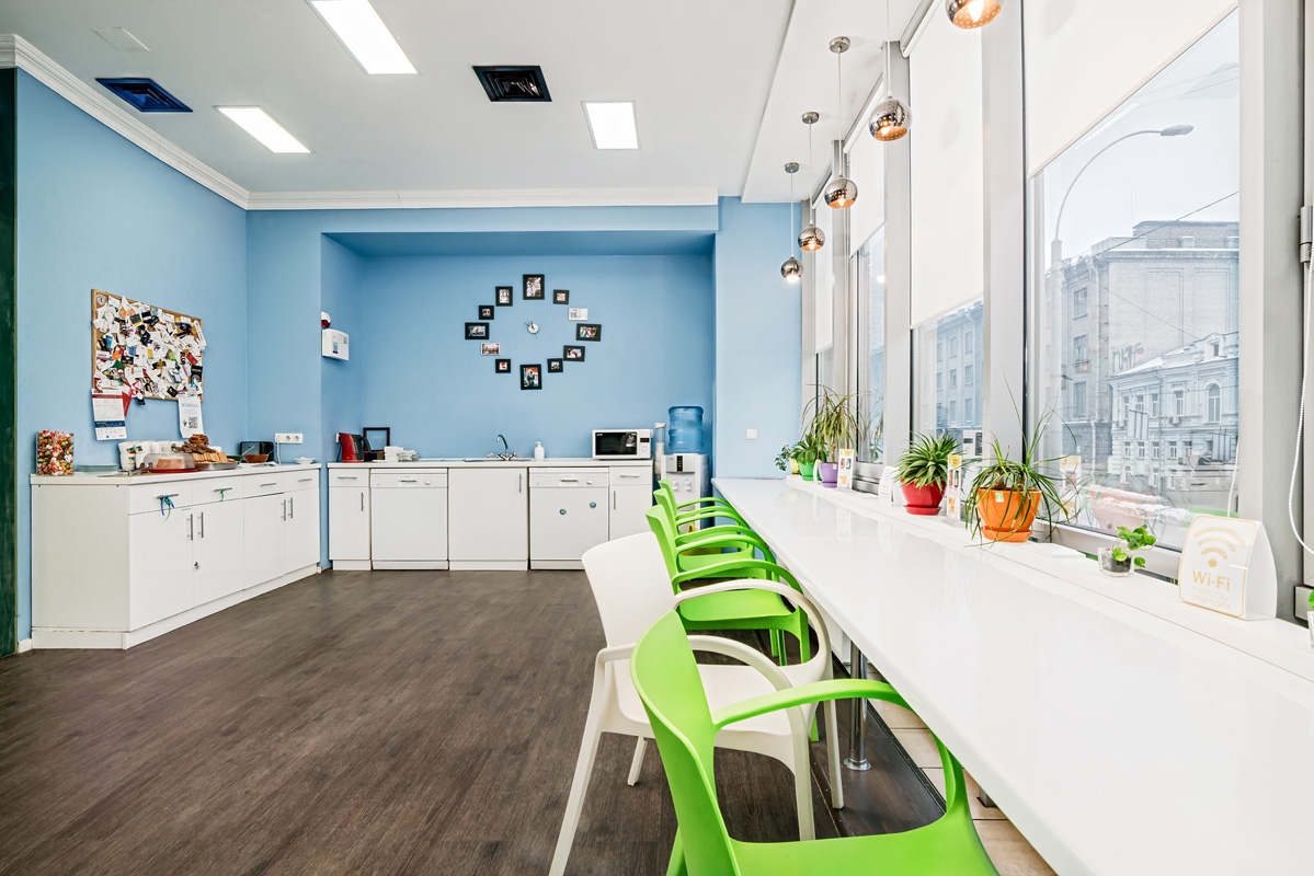 Світле просторе приміщення з панорамними вікнами з прекрасним видом. Тут можна провести напружену конференцію в більш невимушеній атмосфері. А вид на метушливу центральну вулицю столиці і зовсім заспокоює нерви. Тренінги, семінари, нагородження, прес-конференції чи презентації - будь-яке Ваше подія пройде на вищому рівні. Якщо Ви шукаєте функціональне приміщення під тренінги в Києві, у нас є що Вам запропонувати!
