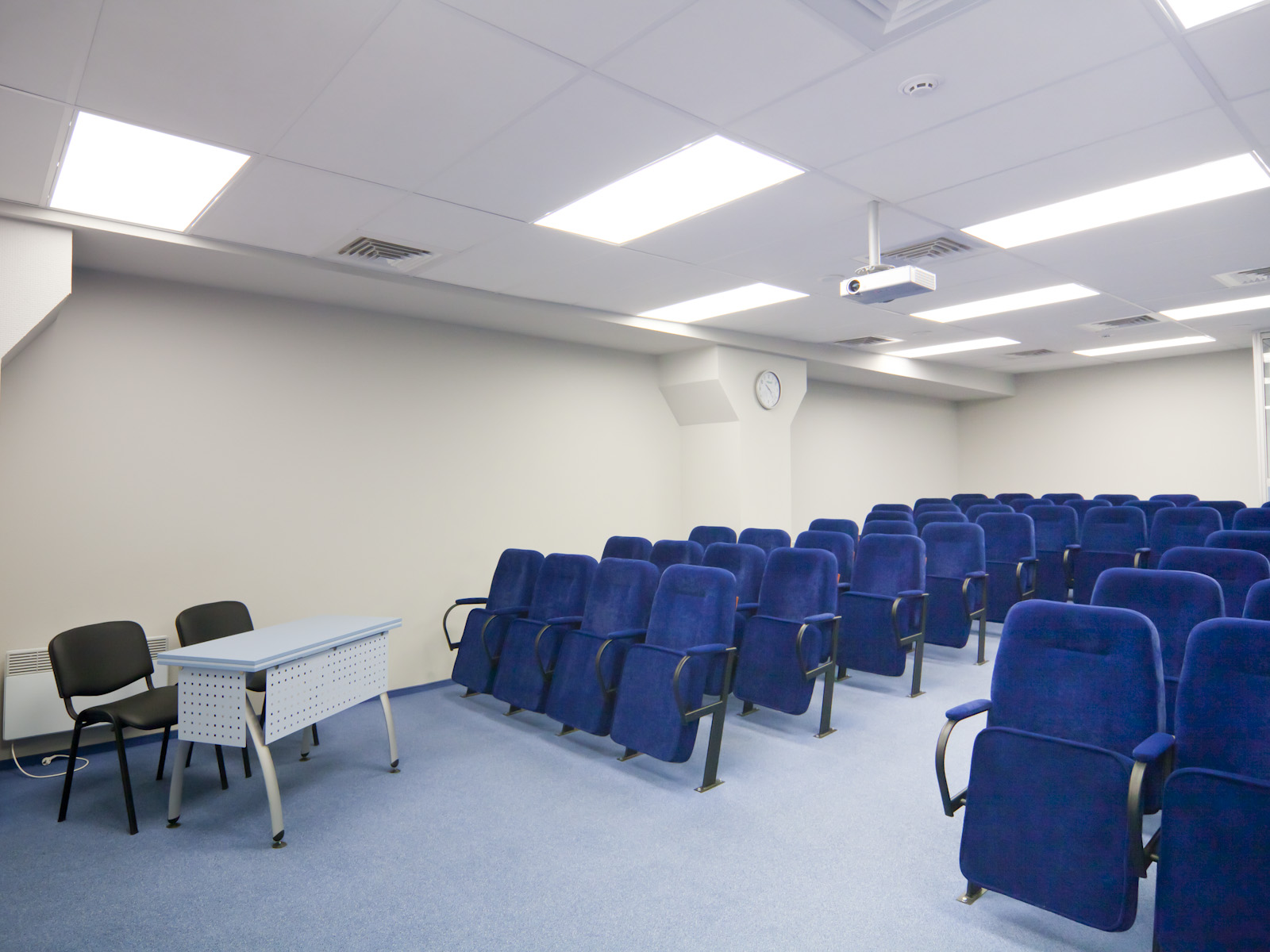 Серед запропонованих приміщень - конференц зал з «театральною посадкою», розрахований на 55 осіб (75 кв.м), обладнаний зручними кріслами та презентаційної апаратурою.
